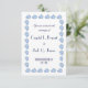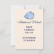 Este modelo design apresenta uma ostra azul e um texto de script. Na frente da placa há uma borda de ostras azul com texto preto e marinho. A frente do cartão exibe os nomes do casal, a data do casamento, o local do casamento e uma versão maior da ostra está na parte de trás do cartão com detalhes adicionais de casamento abaixo.