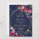 Rosas cor-de-rosa, cor-de-rosa, verde marinho azul de fundo ouro geométrico geométrico modelo de convite para casamento floral com código QR RSVP no verso.