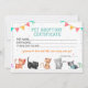 Convites modelo de certificado de adoção de animal de estim