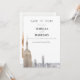 Este modelo de data de salvamento para impressão DIY apresenta uma pintura em aquarela da silhueta da cidade de Nova York. Use este modelo para editar todas as palavras, fonte, cor da fonte e cor do fundo para combinar com o estilo do seu evento. Adicione sua própria foto ou gráficos facilmente a este modelo.