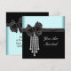 Convite de festa azul turquesa e preto com diamantes, arco, azul turquesa e preto para todas as ocasiões, aniversário, casamento, aniversário de casamento, aposentadoria, modelo de convite de festa azul turquesa e preto.