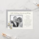 Convite de aniversário de casamento de prata com modelo de foto. Cor ecru com moldura cinza prateada em torno de uma imagem do casal. Orquídeas brancas com centros amarelos decoram o canto inferior e o texto também é cinza prateado. Personalize uma linha na parte superior com o ano de casamento e o tipo de encontro - festa ou renovação de votos - e adicione facilmente todas as informações da festa usando o modelo fornecido. Adicione espaços conforme necessário para nivelar o texto. O verso é cinza sólido.