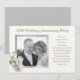 Convite de aniversário de casamento de prata com modelo de foto. Cor ecru com moldura cinza prateada em torno de uma imagem do casal. Orquídeas brancas com centros amarelos decoram o canto inferior e o texto também é cinza prateado. Personalize uma linha na parte superior com o ano de casamento e o tipo de encontro - festa ou renovação de votos - e adicione facilmente todas as informações da festa usando o modelo fornecido. Adicione espaços conforme necessário para nivelar o texto. O verso é cinza sólido.
