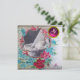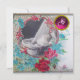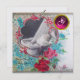 Design floral elegante, engraçado, com estilo vintage, com um bebê e cegonha voadora entre as lindas rosas vermelhas rosa, flores de primavera azuis e uma vibrante, brilhante, rosa, pedra rubi fuchsia 3D, de Búlgaro Lumini.