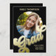Este design apresenta um convite para fotos de formando, com modelo de círculo fotográfico, um roteiro simples, moderno, na moda, de caligrafia dourada, com minimalista, tipografia retrô, perfeito para segundo grau ou formando universitário, com a classe de 2024
