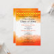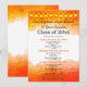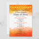 Este design de convite de reunião de classe de segundo grau de formato vertical apresenta bordas superiores e inferiores de cor d'água laranja ao longo da parte superior. Personalize suas informações, remova as informações ou clique em personalizar para selecionar uma cor de tipo, tamanho e estilo preferidos.
