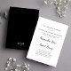 Este design apresenta um convite formal, simples e elegante, preto e branco, um código QR clássico, RSVP, com um roteiro de caligrafia, tipografia, um estilo mínimo moderno clássico e uma redação tradicional. Crie o seu com este modelo.