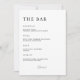 Eleve sua recepção de casamento com este Modelo de Sinal de Menu de Bar de Casamento personalizável do Zazzle. Apresentando um design moderno e elegante, este modelo permite que você mostre suas ofertas de bebidas em estilo. Personalize o texto, as fontes e as cores para combinar o tema do casamento sem esforço. Perfeito para um bar aberto, coquetéis de assinatura ou uma lista de bebidas curadas, este cartaz de menu de bar adiciona um na moda e um toque prático ao seu dia especial!