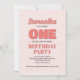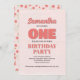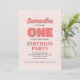 Celebre o marco do seu filho com o quinto convite de aniversário desta garota! Apresentando uma tipografia rosa "um", um padrão floral fofo, e um simples modelo, este design é perfeito para uma celebração moderna e minimalista. A escrita de caligrafia branca adiciona um toque de diversão, enquanto as elegantes flores chic trazem uma vibração na moda whimsy. Personalize este convite encantador hoje para um doce e inesquecível primeiro aniversário!