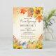 Festa jante de ação de graças convite para descarregamento instantâneo, outono deixa abóboras de folhagem, cores quentes com girassóis e abóboras.
