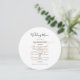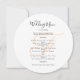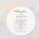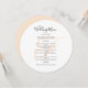 Redondo, ou quadrado, modelo de menu de casamento com monograma inicial em branco, ou cor de pêssego. Os cartões brancos têm um script preto para o título e o texto impresso para a lista de menus. Use espaços e letras maiúsculas para seções ou altere o texto conforme necessário. O monograma do casamento do casal será impresso no centro por trás da redação. O reverso corresponde à cor de pincel.