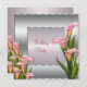 Elegante rosa e convite de aniversário de lírio rosa-prateado. Lindos lírios cor-de-rosa também estão nas costas. Personalize com sua escolha de fonte, cor da fonte e posicionamento do texto.
