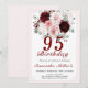 Convites de Aniversário de 95 anos em Flores Burgundy e Rosa Bege | Convite de Aniversário Floral em Aquarela Burgundy para 50, 60, 70, 80, 90... QUALQUER IDADE