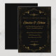 Elegant Modern Art Deco Wedding Invitation in Black with Gold accents.