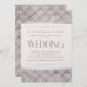 Este elegante convite de casamento apresenta um padrão de fãs de deco, cor-de-rosa pincelado e falso prata, com elementos deco de na moda.