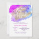 Festa de comemoração da menina Bat Mitzvah, um belo moderno. Grandes letras com cor d'água azul púrpura design com falso traço de pincel dourado. Lá atrás está o nome da menina. Imprima seus convidados com estes convites!