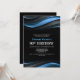 Invite your friends and loved ones to your 90th birthday celebration with this modern black and blue invitation. The customizable text area in this invitation template allows you to include all the necessary details for your special birthday celebration, including the date, time, venue, and RSVP information. A variety of paper types and corner styles are available for your unique invitations, along with the option to download if you prefer a digital format.