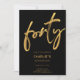 Modern Black & Gold 40th Birthday Invitation for Him. Celebrate his big 40 in style with this modern, minimal black and gold birthday invitation. The sleek design features bold simplicity and a faux-gold script reading “Forty” for a clean, masculine look. Personalize the details to create the perfect invite for a classy, unforgettable milestone celebration. Ideal for an elegant dinner, cocktail party, or upscale birthday event.
