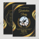 Celebrate your graduation with a stylish black and gold invitation design featuring elegant golden curves and a central photo frame surrounded by luxurious laurel leaves. This modern graduation invitation is perfect for announcing your big achievement and inviting friends and family to a memorable graduation celebration. A sophisticated design that highlights pride, success, and the joy of this special milestone.