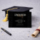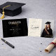 The front of the invitation showcases a bold “Graduation Party” headline in elegant gold script on a sleek black background, creating a sophisticated and timeless look. The back design includes a graduation photo area with inspirational achievement words, making it the perfect keepsake for celebrating this special milestone.