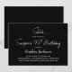 Este moderno convite de 95 anos para a surpresa negra foi feito para estabelecer a palco de uma celebração verdadeiramente memorável. Os modelos de texto personalizáveis permitem adicionar o nome do convidado honrado, os detalhes da festa secreta e o local com facilidade. O seu amado estará presente durante uma noite de risos e lembranças queridas. Você pode escolher entre vários tipos de papel e estilos de canto para criar convites exclusivos que se adequem ao seu gosto. Além disso, você também tem a opção de baixar o convite se preferir uma versão digital.