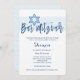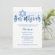 Modern calligraphic design for a Bar Mitzvah invitation in blue.