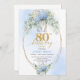 Convites Modern Blue Hydrangea Gold Frame 80th Birthday