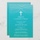 Belo convite da Primeira Sagrada Comunhão, com uma delicada terra rico com uma cruz branca pendurada sobre um fundo azul-turquesa chico e popular para um menino. Sacudir o convite para encontrar um ombre de volta para um toque especial extra. Disponível em nosso compro em uma variedade de cores para uma garota ou um garoto.
