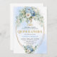 Convites Modern Blue Peony Gold Frame Quinceañera Invite