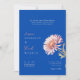 Infuse your wedding day with romance and elegance using this exquisite invitation. A captivating watercolor-style chrysanthemum in soft pinks and whites is nestled on a dark blue canvas, creating a striking visual contrast. The flowing script for the names evokes a sense of personal warmth and affection. This design is ideal for couples who appreciate artistic details and a refined aesthetic for their wedding announcements. All necessary details, RSVP instructions, and website information are clearly presented.
