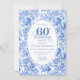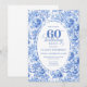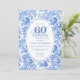 Convites Modern Blue Toile Roses 60th Birthday Invite Digit