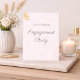 Modern blush engagement party design featuring a soft ivory textured print background, airy gray script lettering, and subtle gold brush accents. Clean layout with refined spacing offers a polished look for couples hosting a contemporary celebration announcement.