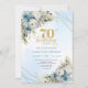 Celebrate a milestone in style with this elegant 70th birthday invitation featuring watercolor dusty blue and white flowers, soft eucalyptus greenery, and a shimmering gold frame. Designed in chic boho style with refined script lettering, this floral invitation is perfect for a classy 70th birthday party. Ideal for formal, garden, or luxury celebrations with a timeless, sophisticated touch.