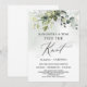 Convites de casamento boho modernos com folhagem verde para noivado ou fuga, entre em contato para itens combinando ou personalização, Rosas Cor-de-Rosa ©