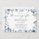 Esta elegante manhã de casamento depois do convite da nossa coleção Blue Pressed Floral apresenta cor azul-d-água floral com delicadas vinhas verdes, combinadas com uma letra moderna. Perfeito para qualquer estação. Para fazer alterações avançadas, selecione Personalizar -> Editar usando a ferramenta Design.