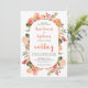 Modern Boho fall terracotta floral guião convite para o casamento com bonito mão pintada de tons quentes de terracotta, pêssego e verde escuro com uma máscara redonda. Perfeito para o outono, festa de casamento temática. Com uma tipografia moderna.