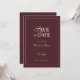 card. Featuring a contemporary minimalist layout paired with rich burgundy tones, it’s the perfect blend of elegance and modern sophistication. Ideal for fall or winter weddings, this design sets the tone for a romantic and timeless celebration.