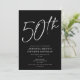 Este convite moderno da 50ª festa de aniversário apresenta um fundo negro de chic com escrita branca e tipografia moderna. O roteiro diz "50º". Todas as cores (até mesmo o script do ano) são personalizáveis completa e facilmente. Você pode até adicionar uma foto atrás! Basta usar a "ferramenta design" no menu suspenso de personalização.