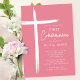 Este moderno convite cor-de-rosa Primeira Comunhão apresenta um design na moda cruz, perfeito para celebrar este marco religioso especial. O esquema cor-de-rosa pincelado adiciona um toque de feminilidade e graça ao convite, fazer-o ideal para a primeira cerimônia de primeira comunhão de uma jovem. O design simples, mas sofisticado, certamente impressiona os convidados e dá o tom para um evento memorável.