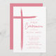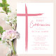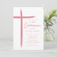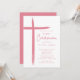 Este moderno convite cor-de-rosa Primeira Comunhão apresenta um design na moda cruz, perfeito para celebrar este marco religioso especial. O esquema cor-de-rosa pincelado adiciona um toque de feminilidade e graça ao convite, fazer-o ideal para a primeira cerimônia de primeira comunhão de uma jovem. O design simples, mas sofisticado, certamente impressiona os convidados e dá o tom para um evento memorável.