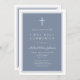Moderno Dusty Blue Cross Boy Primeiro Sagrado Convite Comunitário.