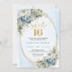 Convites Modern Dusty Blue Floral Gold Sweet Sixteen Invite