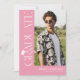 Celebrate your graduate in timeless, elegant style with this modern pink and white graduation invitation. Set against a stylish pink background, the design features trendy white serif “GRADUATE” typography running vertically down the side, creating a refined focal point. A stylish graduation cap icon sits above the “R,” while the flowing tail of the letter transforms into a sleek tassel—leading the eye to a standout photo of the graduate.