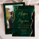 Convites Modern Emerald Green Agate Script Photo Wedding