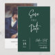 Este moderno evento de casamento ao estilo minimalista salve a data convite com lindas características tipográficas de escrita e simples fontes serif com um fundo verde esmeralda. É perfeito para qualquer tema de casamento. Substitua a foto pela sua no verso do convite para lhe dar um toque pessoal agradável. Se precisar alterar a cor, você pode personalizar o cartão de convite. Você pode personalizar e personalizar o convite para ajustado das suas necessidades de evento de casamento e clicar em personalizar o convite. Você pode personalizar facilmente este convite com seu próprio texto e compartilhá-lo com seus convidados digitalmente — seja através de texto, email ou mídia social. Se preferir, você também tem a opção de enviar uma versão impressa para seus convidados. Ou, você pode fazer ambos — enviar uma versão digital e acompanhar com uma cópia impressa para um toque pessoal!