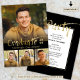 Convite para festa de formatura moderno com uma colagem de fotos de quatro fotos na frente com tipografia falsa de pincel de folha metálica de ouro para o título do FORMANDO na frente e seus detalhes de convite para festa de formatura no verso. ALTERAÇÕES: Altere a cor preta do fundo e/ou altere o estilo, o tamanho, a cor ou o posicionamento da fonte de texto na EDIT para criar a sua própria aparência ou para coordenar com as suas fotografias. ASSISTÊNCIA: para obter ajuda com a modificação ou personalização do design, alteração de cor, transferência do design para outro produto ou, se você quiser coordenar itens, entre em contato com o designer ANTES DE ENCOMENDAR através da guia MENSAGEM de bate-papo Zazzle ou envie um email para makeitaboutyoustore@gmail.com.