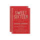 Este convite de aniversário elegante, moderno e glamouroso dos Dezesseis é perfeito para a sua jovem filha adolescente. Ele apresenta uma tipografia de sequências de ouro rosa dourado, falsa impressão, e bordas laterais sobre um simples fundo vermelho e ferrado. É chic, bonito, moda, e único! ***NOTA DE DESIGN IMPORTANTE: Para qualquer solicitação de design personalizada, como solicitações de correspondência de produtos, alterações de cor, mudanças de posicionamento ou qualquer outra solicitação de alteração, clique no botão "CONTACT" ou envie um e-mail ao designer diretamente em lafemme.art@gmail.com. Você pode até enviar um e-mail para ela solicitando um design completamente personalizado e novo.