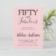 A Modern Minimal Fifty and Fabulous pink and black modern 50th birthday invitation that you can personalize and send out for your fiftieth birthday party celebration. The words "Fifty and Fabulous" are set using trending bold font typography. Have fun customizing the name, date and time, location, and RSVP with the editing tool.