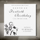 Um belo e elegante convite de aniversário para adultos surpreendente, preto e branco, com um coelho ilustrado à mão e uma silhueta floral. Personalizável para qualquer marco de aniversário