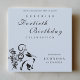 Um belo e elegante convite de aniversário para adultos surpresa em azul preto e pastel com um coelho ilustrado à mão e uma silhueta floral. Personalizável para qualquer marco de aniversário